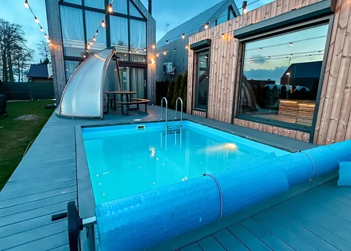 Located approximately a 10-minute ride from the Dog Museum, the 1-bedroom Namas Su Privaciu Baseinu, Sauna Ir Kubilu! Palanga villa offers a terrace with views of the garden.